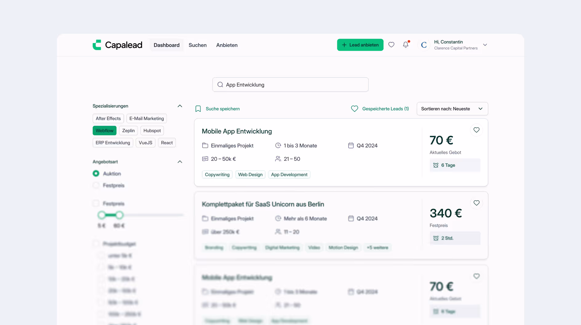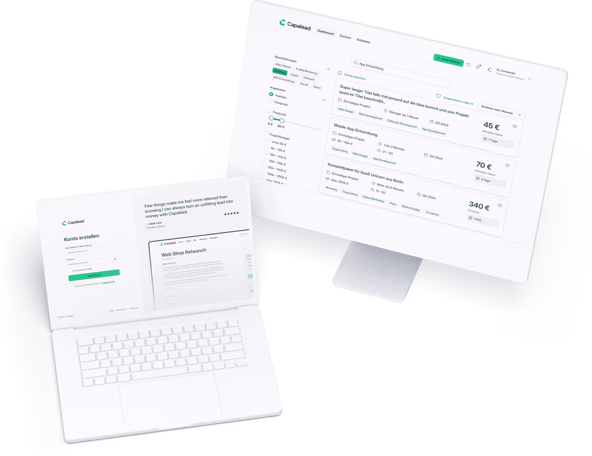 Capalead startete als völlig neue Geschäftsidee: ein digitaler Marktplatz, auf dem Agenturen ungenutzte Leads verkaufen und gleichzeitig neue Leads ersteigern können. Die Vision war klar – die Umsetzung jedoch voller Herausforderungen.
