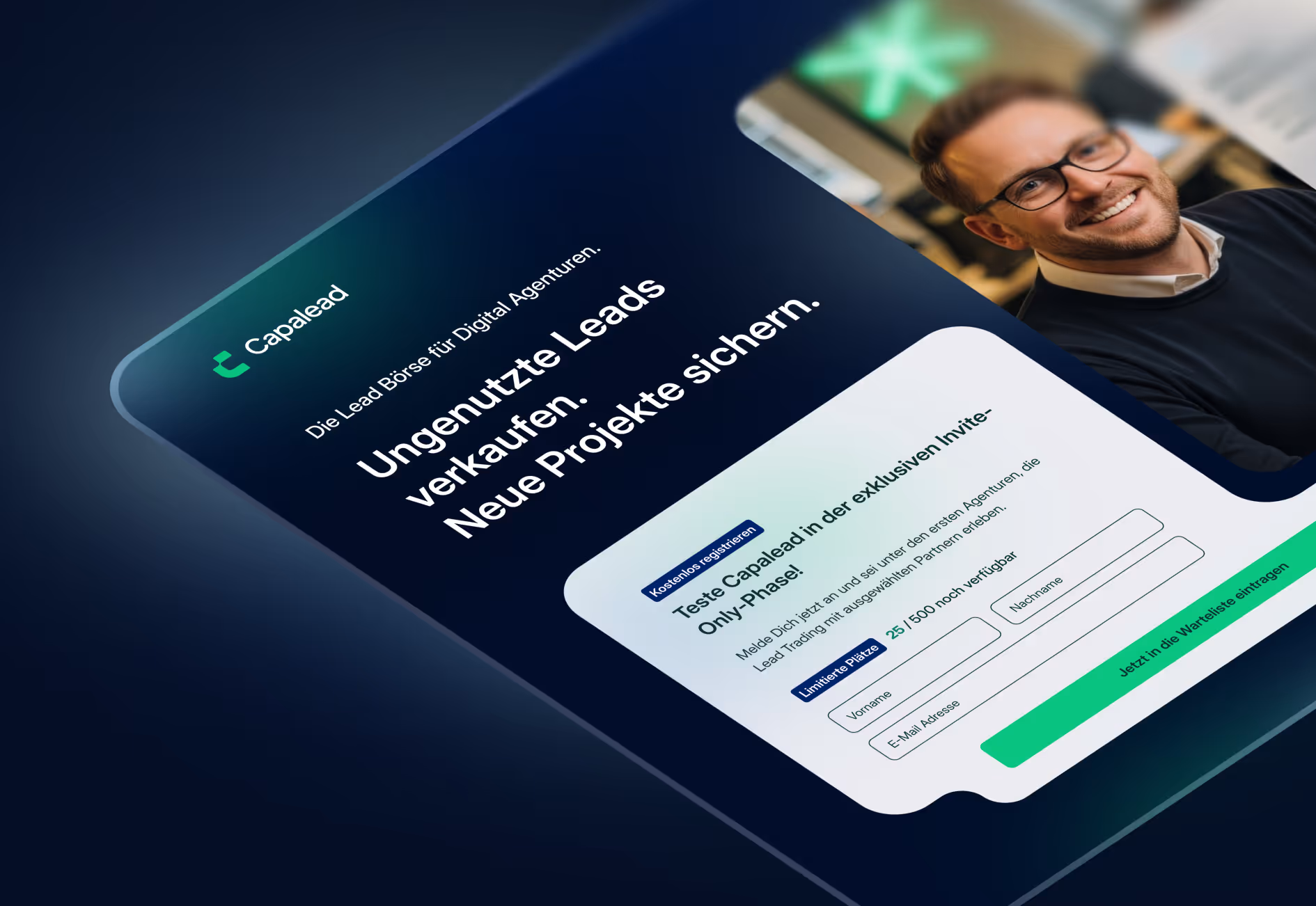 Capalead erhielt ein klares, modernes Markenbild – von Naming über Logo bis zu Key Visuals. Der gestaffelte Roll-out mit Warteliste baute frühzeitig Vertrauen und Nachfrage auf.